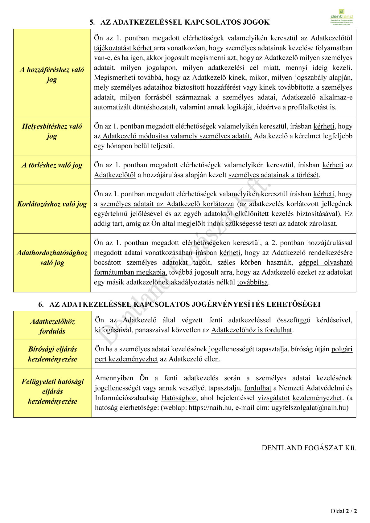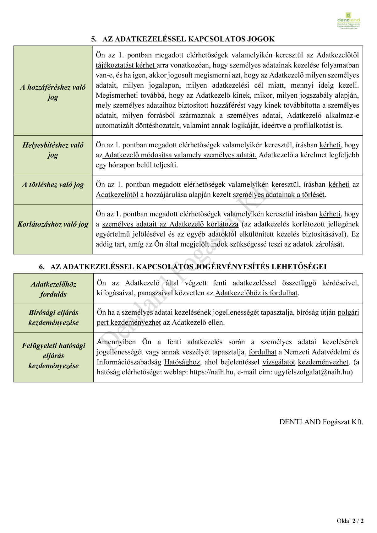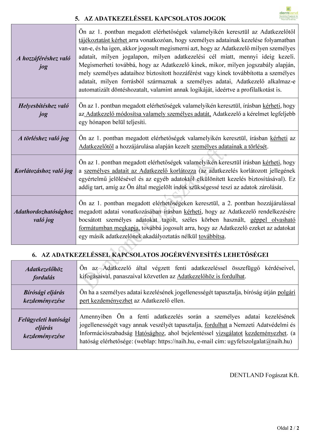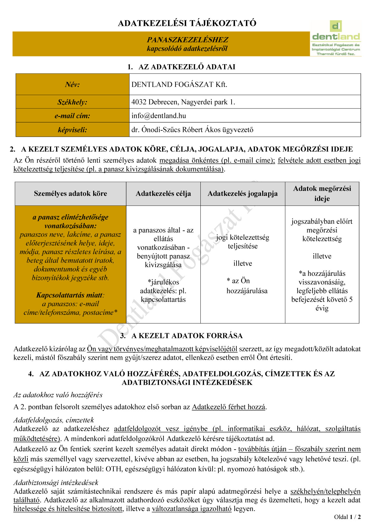 Home / Dentland Fogászat Kft. – GDPR Dentland Fogászat Kft. – GDPR Dentland Fogászat Kft. - Adatkezelési tájékoztatás A képekre vagy a letöltés gombokra kattintva letölthető az adott „Adatkezelési tájékoztató” Adatkezelési tájékoztatás Fogászati ellátás letöltés Adatkezelési tájékoztatás Telemedicina letöltés Adatkezelési tájékoztatás Elektronikus üzenet megválaszolásához letöltés Adatkezelési tájékoztatás Hírlevél küldéséhez letöltés Adatkezelési tájékoztatás Panaszkezelés letöltés Adatkezelési tájékoztatás Érintetti jogok gyakorlásához letöltés Adatkezelési tájékoztatás Kamera üzemeltetése letöltés Adatkezelési tájékoztatás Szolgáltatási díj megfizetéséhez letöltés Adatkezelési tájékoztatás - Fogászati ellátás Adatkezelési tájékoztatás - Telemedicina Adatkezelési tájékoztatás - Elektronikus üzenet megválaszolásához Adatkezelési tájékoztatás - Hírlevél küldéséhez Adatkezelési tájékoztatás - Panaszkezeléshez Adatkezelési tájékoztatás - Érintetti jogok gyakorlásához Adatkezelési tájékoztatás - Kamera üzemeltetéshez Adatkezelési tájékoztatás - Szolgáltatási díj megfizetéséhez